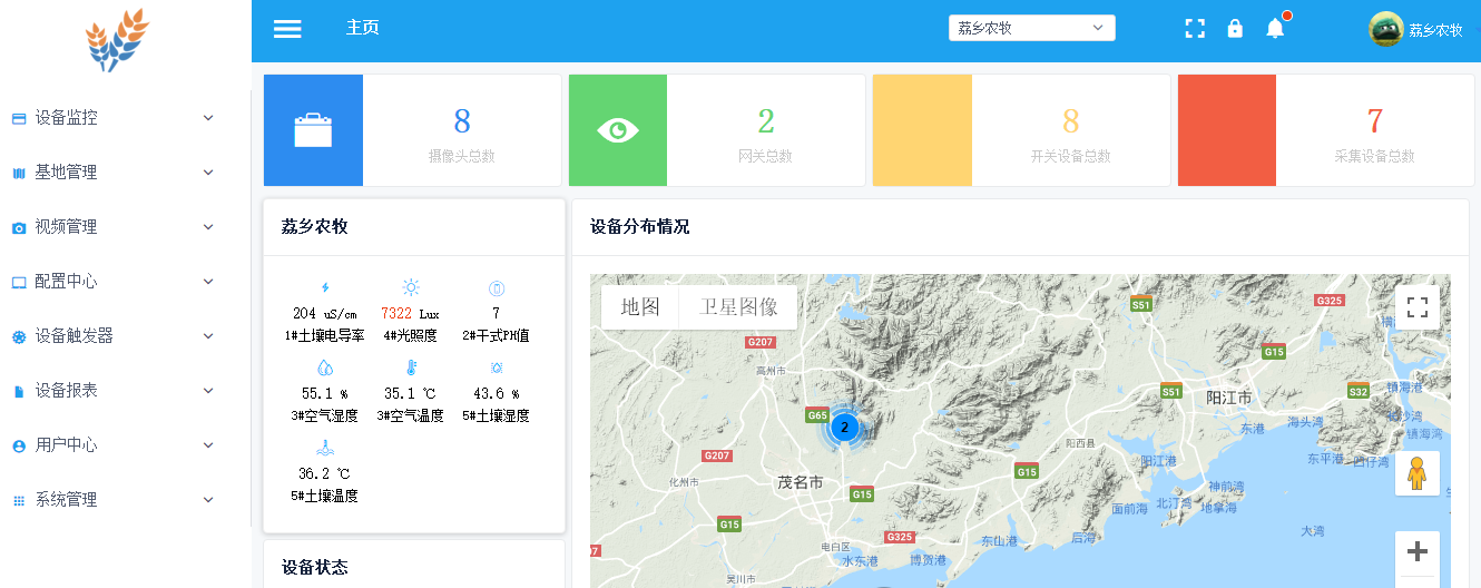 農(nóng)場(chǎng)狀態(tài)可視化實(shí)時(shí)把控農(nóng)場(chǎng)環(huán)境和作物狀態(tài),及時(shí)調(diào)控作物健康情況和農(nóng)場(chǎng)設(shè)備狀態(tài)