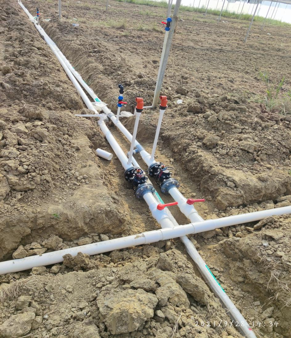 實(shí)施歷程:自2021年8月起,從第一臺(tái)設(shè)備進(jìn)場(chǎng)歷時(shí)兩個(gè)多月,完成水肥一體化的泵房首部安裝和田間的無(wú)線(xiàn)灌溉測(cè)試
