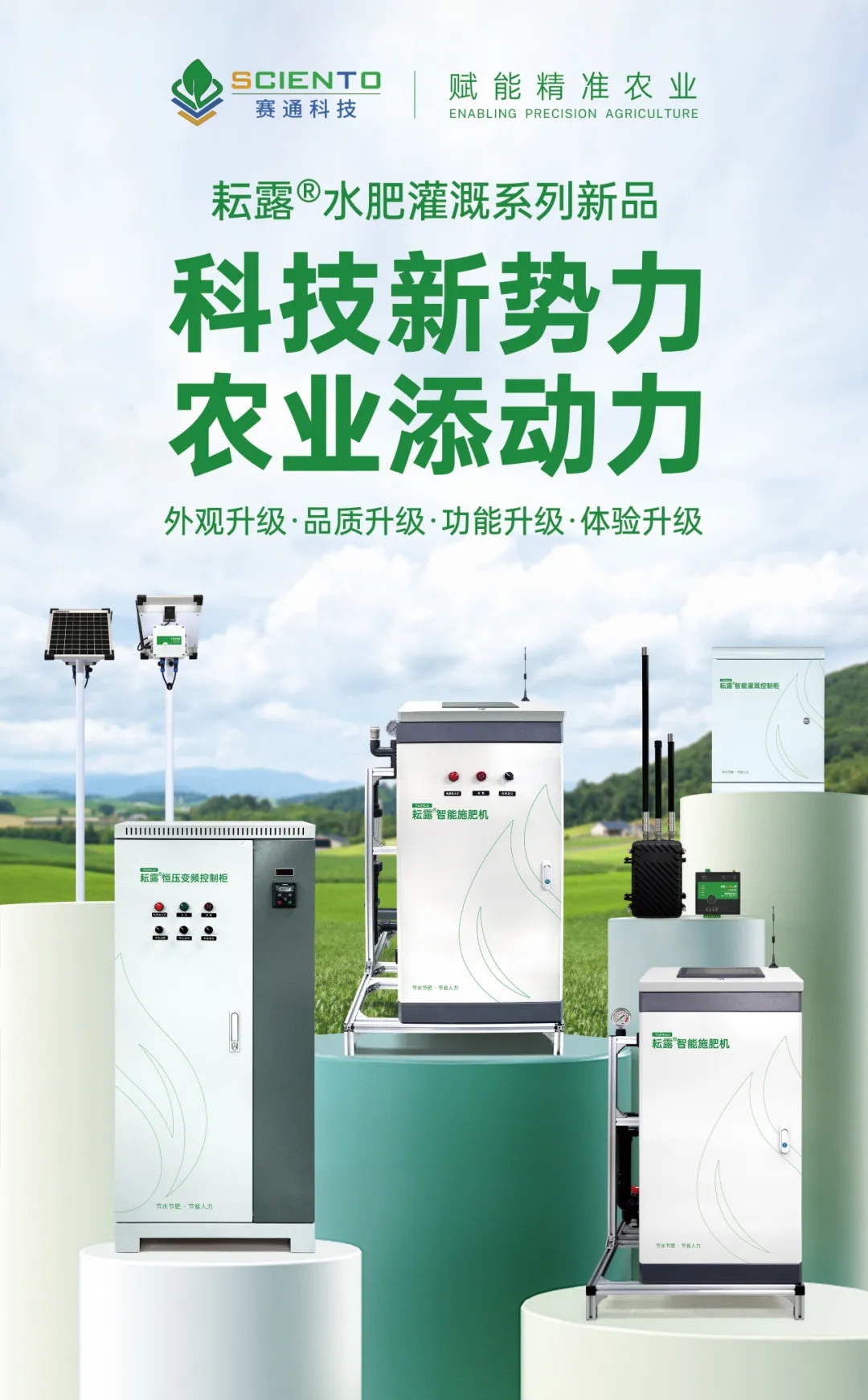 這個春天,賽通科技攜「耘露」水肥灌溉系列新品官宣亮相!以本次新品發布為契機,通過耘、露二字的形象命名,生動概括水肥灌溉系列設備的產品特征——耘,即農耕之事,蘇轍在詩中曾提到:“糞溉耘籽,乃後有穡(sè,指豐收)”;露,即滋潤,《說文解字》有:“露,潤澤也”。