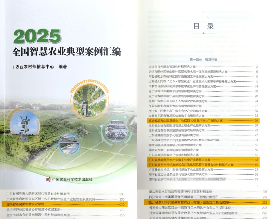 近日,農(nóng)業(yè)農(nóng)村部信息中心組織編著的《2025全國智慧農(nóng)業(yè)典型案例匯編》正式出版,在74項智慧種植典型案例中,廣州賽通科技有限公司深度參與其中5項不同場景的典型案例建設: