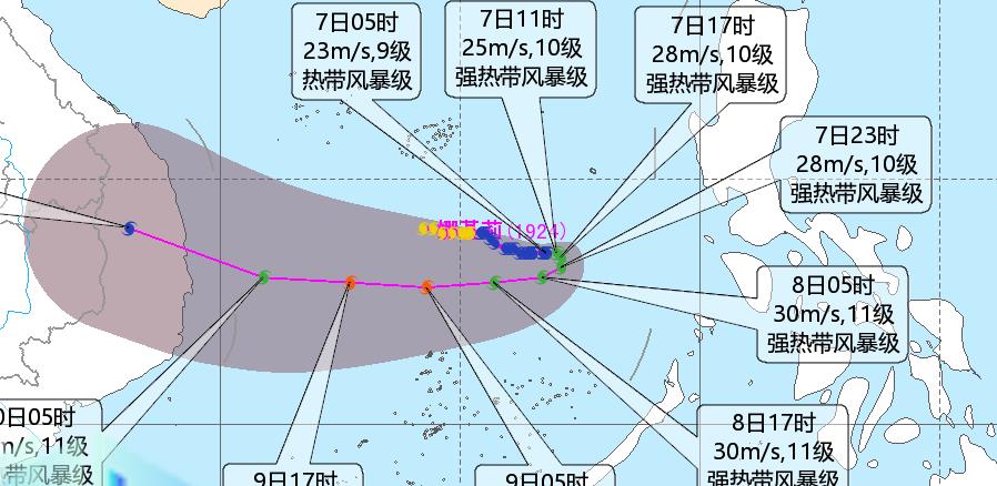 預計,“娜基莉”中心在南海東南部海面上回旋少動,8日開始將向偏西方向移動,強度逐漸加強(見圖1)。