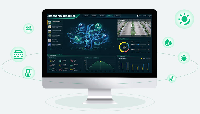 實時采集展示農(nóng)業(yè)生產(chǎn)現(xiàn)場的各種監(jiān)測數(shù)據(jù),包括土壤墑情、溫濕度、光照強度、病蟲害情況、水質(zhì)氨氮含量等,直觀展示農(nóng)業(yè)生產(chǎn)環(huán)境情況,為數(shù)字化管理提供精準(zhǔn)依據(jù)。